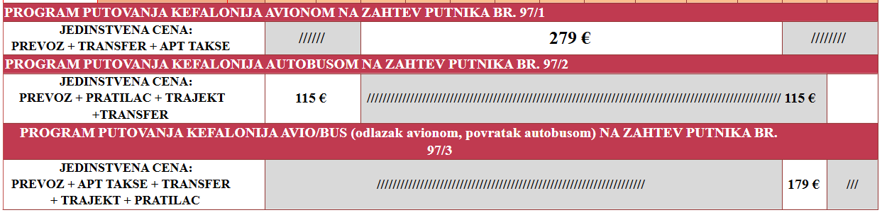 • br 97/1 1 ili čarter let avionom, avio kompanijom Air Serbia, na relaciji Beograd – Argostoli za program putovanja